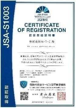 JSA-S1003認証取得について